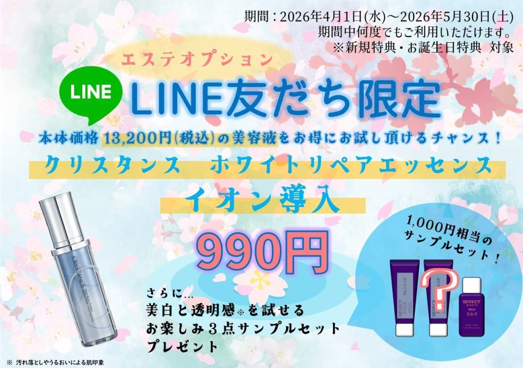 クリスタンスホワイトリペアエッセンスを体感できるエステオプションがございます😌