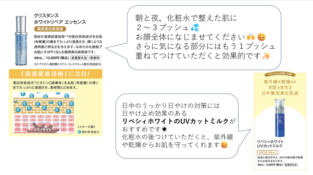 早めに美白効果のあるアイテムをお手入れに取り入れていただくのがおすすめです✨